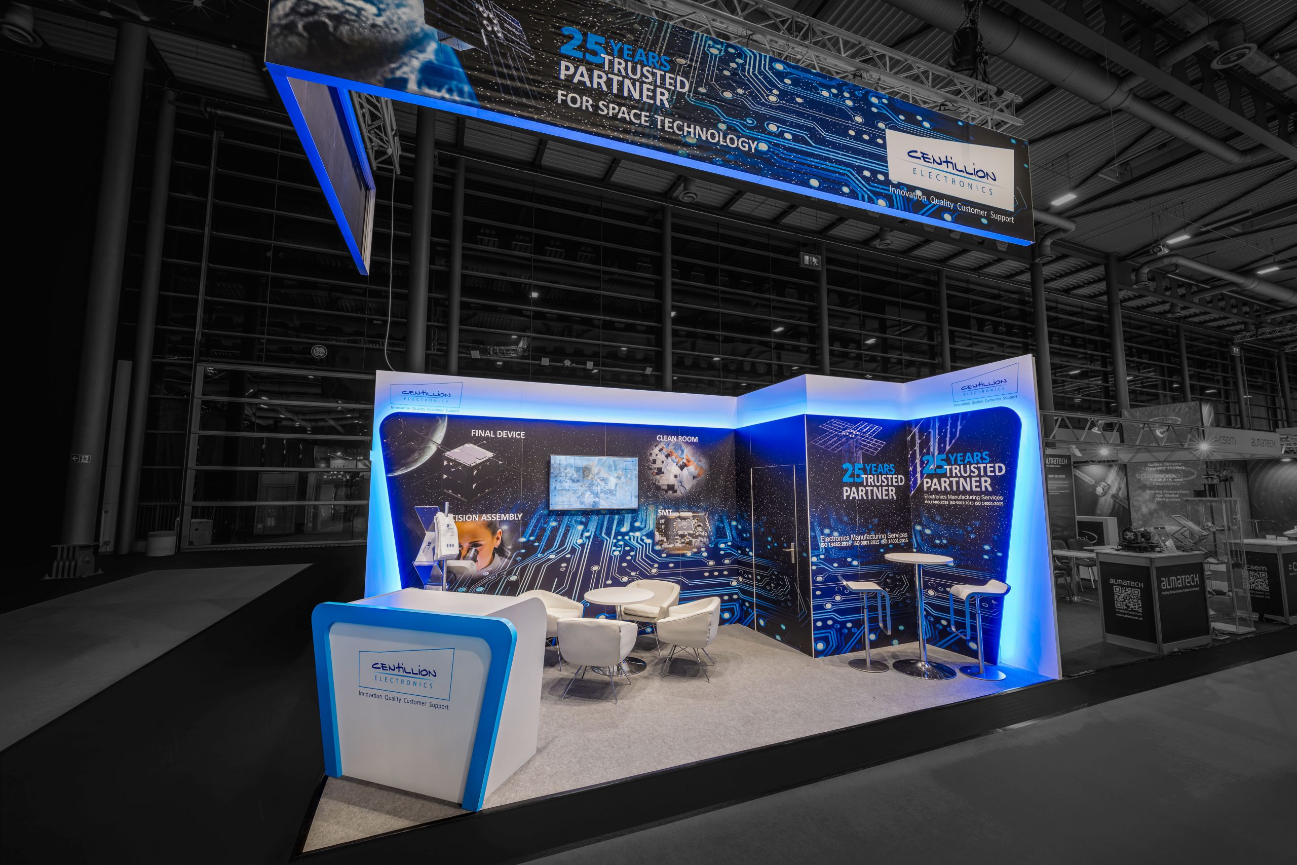 Then you can count on our creativity. We will design your exhibition stand with constantly new ideas, adapted to your company design and your budget. A project manager for individual stand construction will give your briefing his full attention and work together with you to develop the perfect exhibition stand.